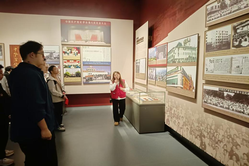 研学队伍首站抵达中国共产党长沙历史馆。在讲解员的引导下,同学们循着“建党先声”到“逐梦前行”的历史脉络,透过珍贵的文物与史料,系统回顾了这座英雄城市的奋斗历史。在毛泽东与杨开慧同志的故居,简朴的陈设将革命先辈艰苦朴素的作风具象化,让同学们接受了一场深刻的精神洗礼,理想信念愈发坚定。