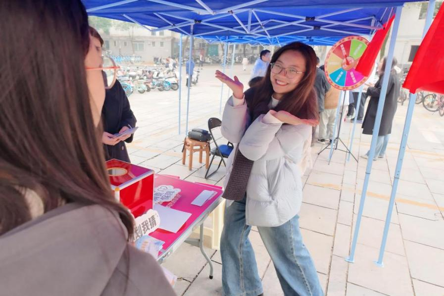 活动自9点持续至17点,现场人气高涨。同学们领取集章卡后有序参与闯关,在趣味互动中辨别假冒伪劣标识、学习实用的维权技巧,提升了识别消费陷阱的能力。此外,集齐印章还可参与抽奖环节,丰厚的奖品进一步调动了同学们的参与热情,现场氛围持续升温。