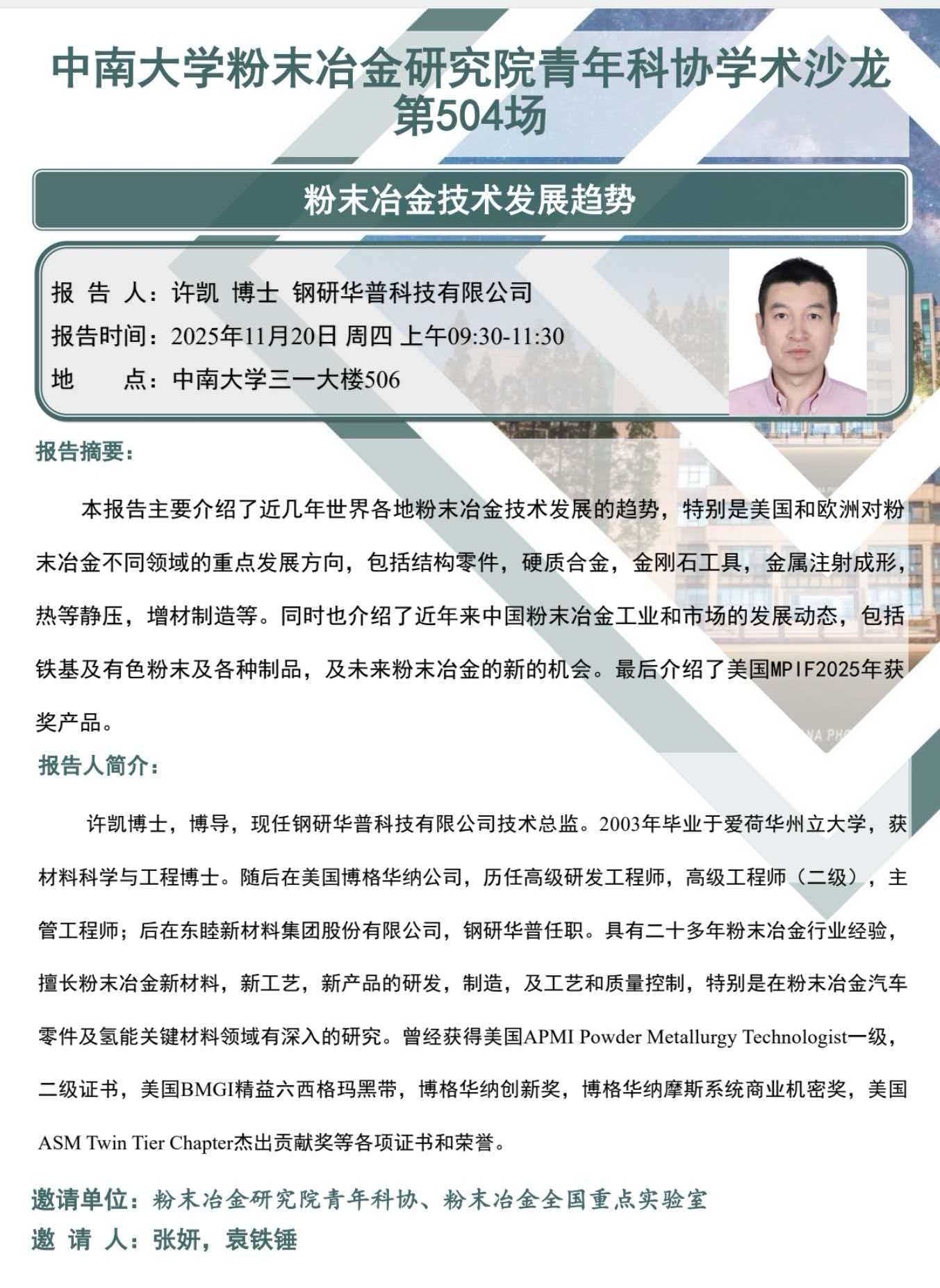 青年科协沙龙(第504场):粉末冶金技术发展趋势