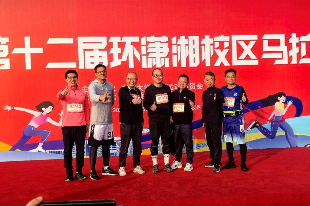 本次赛事吸引了全校众多跑步爱好者参与,赛道途经潇湘校区多个标志性地点,兼具挑战性与观赏性。赛前,我院参赛师生提早抵达起点开展热身活动,同时彼此相互加油鼓劲、交流心得,现场氛围热烈融洽。