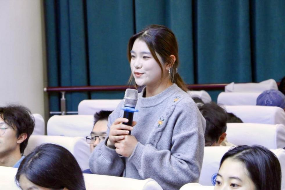 在互动交流环节,朱泓瑜、崔译文、陈思璇、马奥斐等同学围绕专业学习、科研入门、行业前景、能力培养等话题踊跃提问。三位校友结合各自实践经验与人生感悟给予了细致而诚恳的建议,现场气氛热烈。