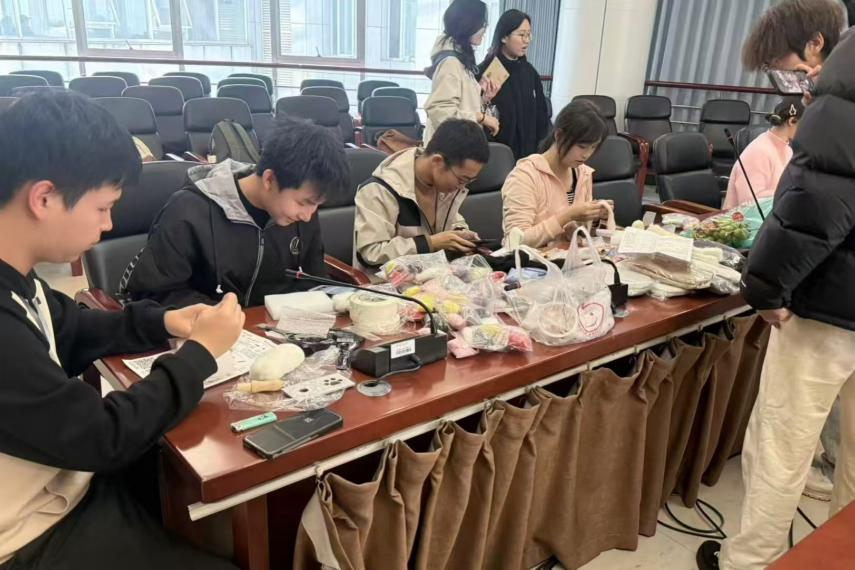 手工创意区则汇聚了同学们的巧思与爱心。卫衣涂鸦、火漆印章DIY、扭扭棒编织、毛毡手套戳制等手工环节精彩纷呈。大家还利用旧物改造,制作出一个个爱心猫窝,为校园流浪猫送上冬日的庇护,让创意在善意中延续。