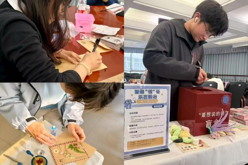 学生会生活权益部联合朋辈心理互助会、青年志愿者协会及研究生会于三一大楼共同举办了暖冬文化节系列活动。活动旨在丰富同学们的冬日生活,营造温暖积极的校园氛围,设置了五个主题体验区,吸引了众多同学积极参与。