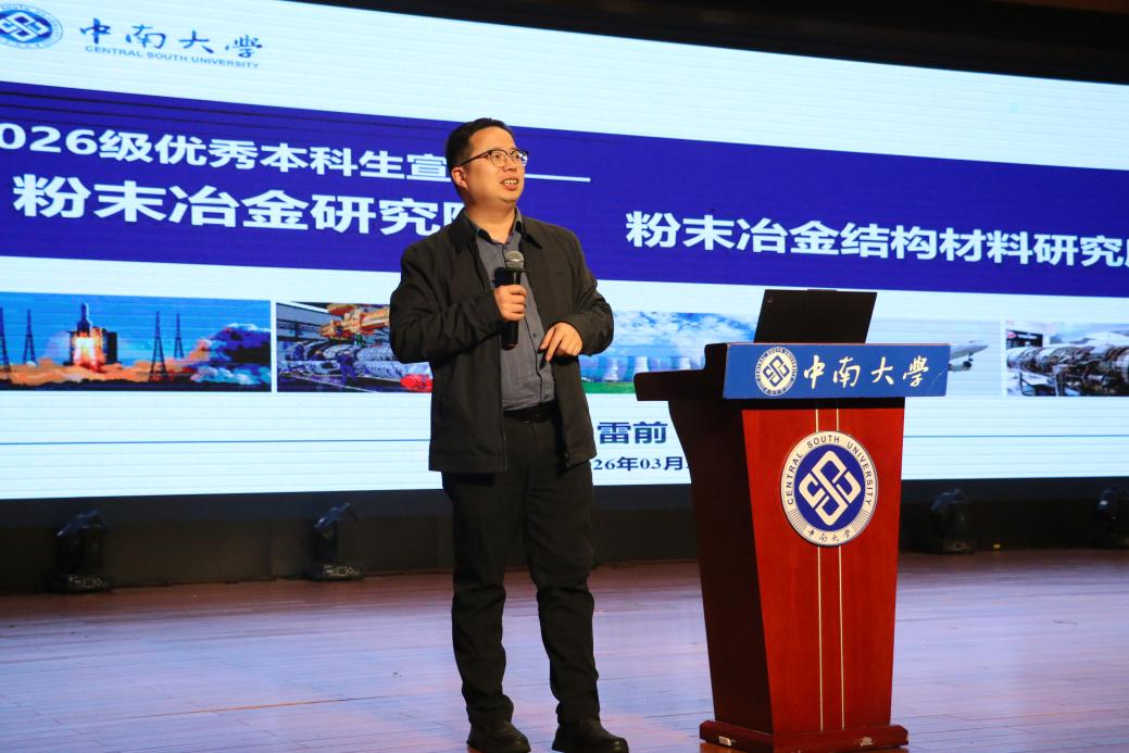 随后,特种粉末冶金材料研究所副所长蔡青山教授详细介绍了研究所的研究方向与代表性成果,他讲解了特种粉末冶金材料在航空航天等国家重大工程中的关键应用,并结合研究所近年来的科研进展,帮助同学们系统认识该领域的学术前沿与产业需求。