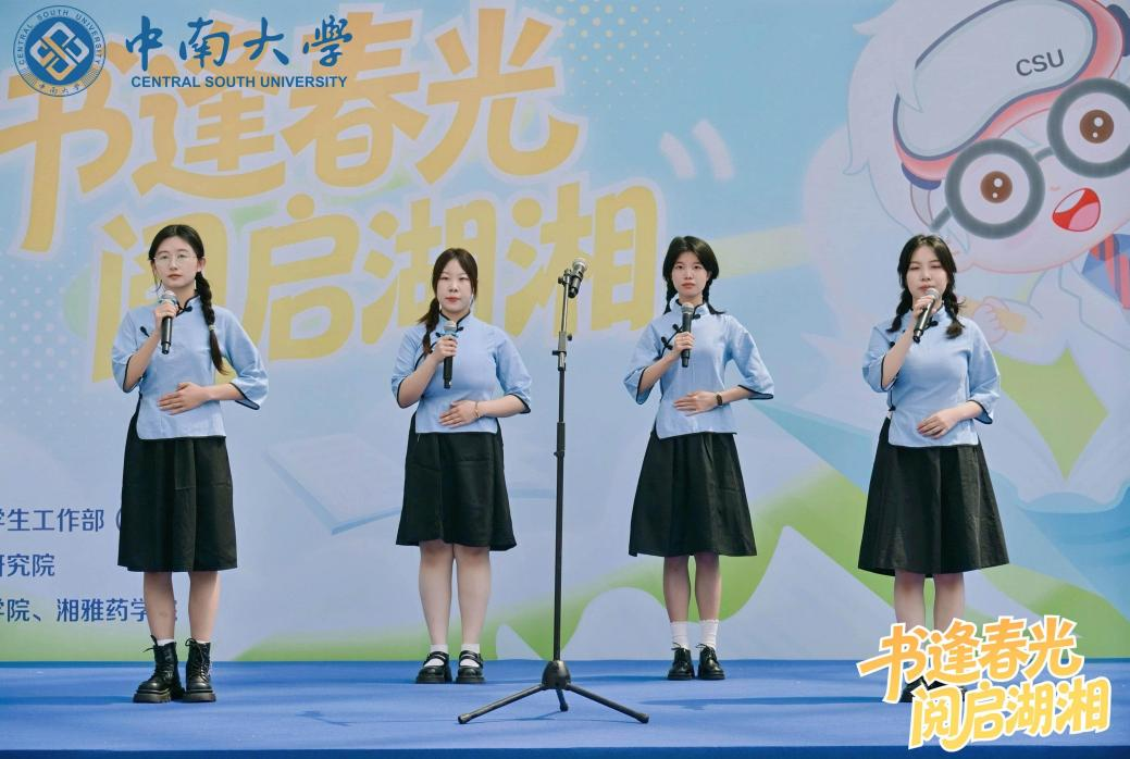主会场上,多名“读书达人”站上领奖台,展示着中南学子的良好风貌。中华经典吟唱团以一首《沁园春·雪》为本届读书文化节拉开序幕。本次活动以“启源-铸韵-立魂-践行-升华-寻根-新生”为主线,设计了投壶雅戏、象棋对弈、先贤飞行棋、拼词成诗等十余项沉浸式互动游戏,让中南学子能够在集章闯关中走进湖湘经典,感悟湖湘书香。